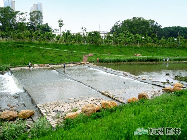 該工程位于深圳市羅湖區(qū)東部深圳水庫壩下,起點(diǎn)為東湖公園翻板閘消力池出口,終點(diǎn)為深圳河三汊河口,整治長(zhǎng)度約2.5公里,施工內(nèi)容包括河岸護(hù)坡、景觀園建、綠化種植、給水和電氣、截污管及過河管道等。工程以“生態(tài)治理河流”為景觀設(shè)計(jì)主題,打造出一條生態(tài)修復(fù)與園林美景兼具的多彩濱河景觀長(zhǎng)廊。