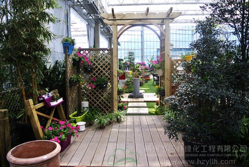青山湖?花園中心中庭景觀是花園中心所有產(chǎn)品設(shè)計搭配及使用的集中展示,目的是讓顧客能夠身臨其中,感受不同風(fēng)格庭院的魅力所在,了解各種材料和植物的使用搭配方式,從而使其對自身庭院需求更加明朗。為了在有限的空間里盡可能地展示多種風(fēng)格,沒有將某一種庭院風(fēng)格做到極致完整,而是選取了多種庭院風(fēng)格里比較有代表性的小景元素加以表現(xiàn),再通過不同的過渡方式,將所有景觀有機(jī)地串連起來。行走其間,中式庭院常用的木質(zhì)景亭、古舊的老石板,歐式風(fēng)格的造型樹木、鐵藝花架,深愛園藝愛好者喜愛的漂亮的容器、小盆栽……不同的風(fēng)格,不同的意境,帶給人不同的視覺體驗(yàn)和心靈感悟。
