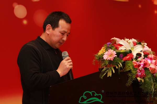 表彰儀式結(jié)束后,董事長吳光洪發(fā)表了新年致詞。吳董首先對各位領(lǐng)導(dǎo)和嘉賓的到來表示了熱烈歡迎;然后與大家共同回望了企業(yè)2011年所取得的成就,并對2012年的發(fā)展進(jìn)行了規(guī)劃和展望,他感謝大家對杭州園林一路的支持與關(guān)注,希望未來仍能與大家一起攜手前行;最后,吳董舉起手中的酒杯,與大家一起為新的一年干杯,并宣布晚宴正式開始。