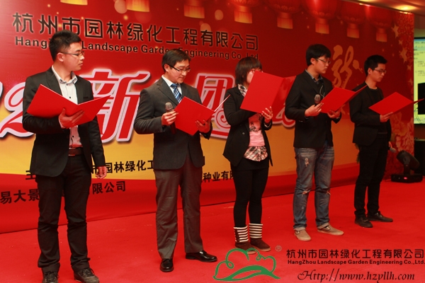 團(tuán)拜會的一個重要環(huán)節(jié)是表彰2011年度的先進(jìn)集體和先進(jìn)個人。人力資源部副經(jīng)理李穎新宣讀表彰文件之后,進(jìn)行了隆重的頒獎儀式,共頒發(fā)了優(yōu)秀分公司、優(yōu)秀市場拓展經(jīng)理、優(yōu)秀項目經(jīng)理、優(yōu)秀員工、新苗獎五個獎項,浙江省林業(yè)廳、杭州市林水局有關(guān)領(lǐng)導(dǎo),董事長吳光洪等為獲獎?wù)哳C發(fā)了證書和獎牌。