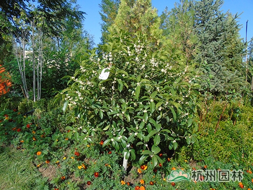 花博會開放時間是9月份,為配合開園需要,根據(jù)不同植物的開花特性及要求,采取相應(yīng)的措施,確保植物的最佳觀賞效果。桂花是杭州市市花,是集綠化、美化、香化于一體的優(yōu)良園林樹種,一般在仲秋時節(jié)綻放,“浙江園”的桂花全部精選自杭州畫境種業(yè)有限公司,提前運送至銀川之后,利用當(dāng)?shù)氐牡蜏丨h(huán)境誘使其完成花芽分化,在開園時營造了桂花滿樹、滿園飄香的氛圍。八仙花又名繡球,花大色美,是長江流域著名觀賞植物,在明、清時代建造的江南園林中就栽有八仙花。特別是八仙花‘無盡夏’具有多次開花的特點,項目人員通過修剪、培育,促進(jìn)其花芽的再次分化,使展園內(nèi)的八仙花處于生長繁茂、花團(tuán)錦簇的良好狀態(tài)。此外,還結(jié)合公司“一種紅楓快速成景方法”等專利,運用摘葉等形式促進(jìn)槭樹科植物萌發(fā)新葉,為九博會的開幕增添新的色彩。