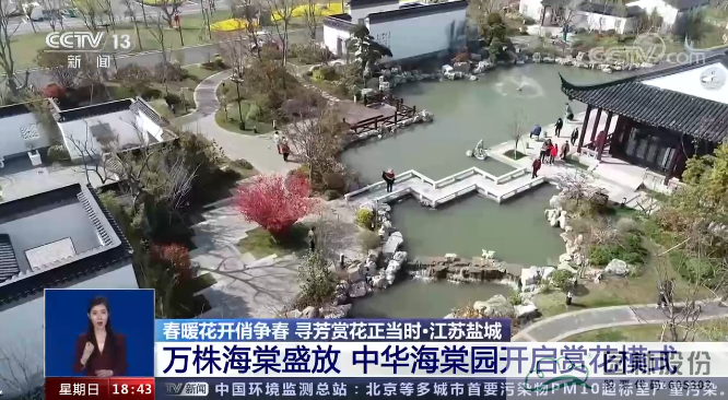 “春暖花開俏爭春,尋芳賞花正當(dāng)時?!?月28日,央視CCTV13新聞頻道《共同關(guān)注》及《東方時空》兩個欄目,先后在熱播時段,報道江蘇鹽城中華海棠園內(nèi)海棠花盛開的美景,為當(dāng)?shù)靥ご郝糜巍板\上添花”!