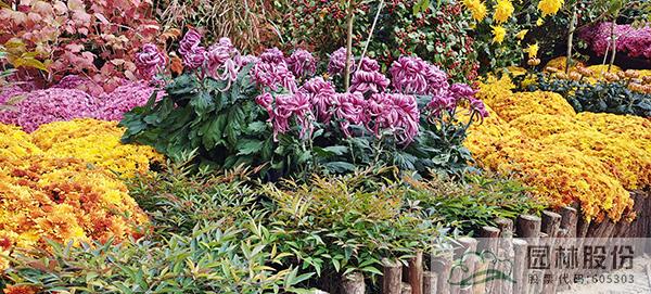 本次花境景觀中的主體雖是菊花,如球菊、蟹爪菊、乒乓菊、芙蓉菊等,但點綴其中的植物優(yōu)良品種,使得整體花境更具獨特魅力。