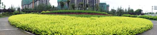 據高經理介紹,該工程是壽光市2009年的一項重點市政工程,本著綠色、生態(tài)、自然的原則,在保留部分大樹的基礎上,對道路景觀進行了全新改造。工程由北至南,依次設置下沉廣場、北廣場、南廣場、方形廣場等多個景觀節(jié)點,每個節(jié)點的植物配置、地面鋪裝等都各不相同,形成一個個獨具特色的小場景;同時,又通過錯落有致的植物搭配、蜿蜒曲折的游憩步道,將整個工程貫穿起來,使得整體的景觀效果統(tǒng)一中富于變化,開闊中層次分明。