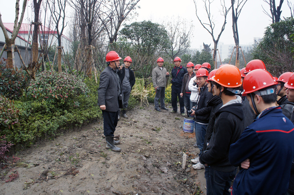 作為被杭州人事局授予的“杭州市大學生企業(yè)實訓基地”,公司一直為浙江理工大學、麗水職業(yè)技術學院等高校的大學生提供實踐學習的機會。今天的參觀,李總以中國·國際城景觀工程這一高標準的項目為范本,不但向同學們介紹了許多課本上學不到的園林設計知識,而且從另一個方面展現(xiàn)了公司對設計和施工高質(zhì)量、高規(guī)格的要求,可以說是給大家上了一堂生動的園林教學實踐課。