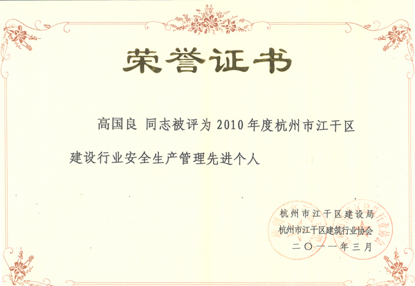 會議旨在總結經(jīng)驗,表彰先進,現(xiàn)場宣讀了一批在2010年為江干區(qū)經(jīng)濟發(fā)展做出突出貢獻的建筑企業(yè)和個人名單,并頒發(fā)了獎牌和證書。其中,公司被評為“2010年度杭州市江干區(qū)城市園林綠化優(yōu)秀企業(yè)”,成為上榜的七家企業(yè)之一;公司工程總監(jiān)、市政分公司副總經(jīng)理高國良被評為“2010年度杭州市江干區(qū)建筑行業(yè)安全生產(chǎn)管理先進個人”。