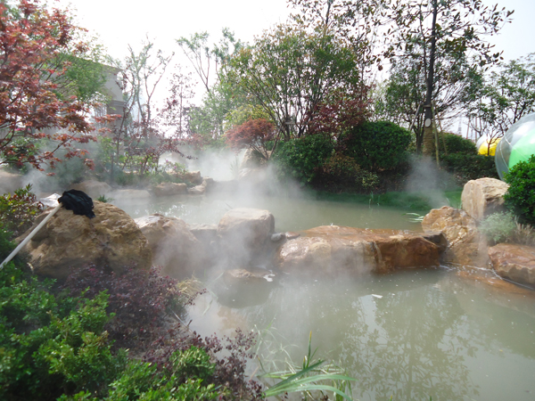 更引人注目的,還有銷售展示中心前面的雕塑噴泉,該噴泉運(yùn)用花崗巖整石雕刻拼接而成,工藝極其復(fù)雜,自上而下不斷灑落的水花,營(yíng)造出一片清涼;無(wú)以復(fù)加的鏤空鐵藝圓頂繁復(fù)花紋和拱門的石材立面裝飾的皇家景觀亭,精致中透露出大氣;潺潺溪流、霧氣繚繞的人工溪澗,如夢(mèng)似幻;大面積的高爾夫果嶺草坪蜿蜒起伏,華貴雍容……