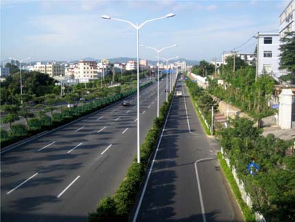 國道205深圳段改建景觀綠化工程G5402標(biāo)段,是深圳市迎接“第26屆世界大學(xué)生運動會”的重點迎賓大道,位于國道205深圳段龍崗區(qū)地鐵三號線愛聯(lián)地鐵站至坪地與惠州市交界處,道路全長約20公里,綠化總面積210000平方米,施工內(nèi)容包括綠化種植、綠化噴灌與管道安裝等,由杭州市園林綠化工程有限公司承建。自2010年8月開工,至2011年8月竣工,歷時12個月。該工程最大的特色和亮點為:“以人為本,尊重自然”、“ 處處有綠葉,無處不飛花”等自然生態(tài)的設(shè)計理念貫穿始終;中央綠化帶位于高架橋下,長勢茂盛的各類植物形成一條繽紛絢麗的彩帶擁簇著高架橋段,使整條橋段與綠化景觀有機(jī)融合。2012年,該工程榮獲中國風(fēng)景園林學(xué)會“優(yōu)秀園林綠化工程金獎”。