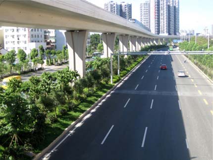 如今,開車行進(jìn)在這條道路上,干凈整潔的路面、開闊通透的視野、清新自然的景觀,給人帶來閑適、愜意的感覺。“以人為本,尊重自然”的綠化理念,體現(xiàn)在景觀中的每個細(xì)節(jié);自然環(huán)境與城市環(huán)境的密切結(jié)合,使高架橋的道路通行功能與橋下中央綠化帶的生態(tài)功能有機(jī)融合。整條道路,不僅體顯出深圳這個濱海大都市獨有的景觀特色,更彰顯出這個城市的生機(jī)活力與熱情奔放。