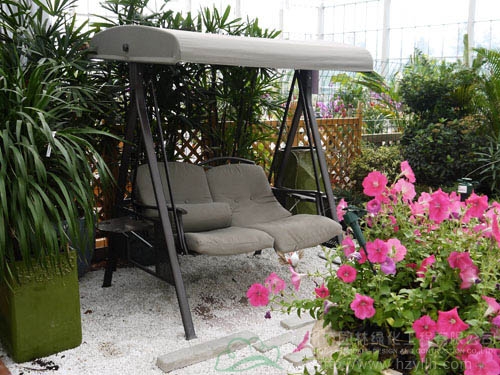 蕩秋千,是兒時記憶中最快樂的玩樂方式之一,在那一蕩一蕩的秋千中,曾留下了多少歡聲笑語和快樂的童年時光。穿過為園藝愛好者設(shè)計的庭院景觀,眼前的這處小景,最引人注目的就是這架做工精美又不失穩(wěn)重的布藝秋千,輕易地讓人聯(lián)想到一家人在此玩樂的溫馨畫面。這處現(xiàn)代庭院風(fēng)格的小景,線條簡約,顏色鮮明,鋪設(shè)木平臺以烘托溫馨的生活氣息,鐵藝的室外桌椅以及精致的裝飾用品,無不顯示出對美好生活的享受與追求。這種類型的小景不受庭院風(fēng)格限制,庭院的主人可以根據(jù)自己的愛好,營造出獨(dú)屬于自家的景觀特色。