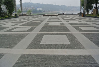 館驛嘴廣場不僅要成為城市的一處標(biāo)志性景觀,更要能經(jīng)得起洪水的考驗,這就對廣場的功能和鋪裝材料提出了更高的要求。