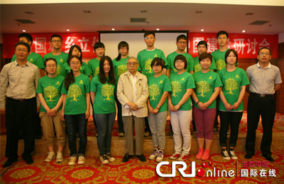 兩院院士、原建設(shè)部副部長(zhǎng)周干峙與美麗獎(jiǎng)校園大使集體合影。