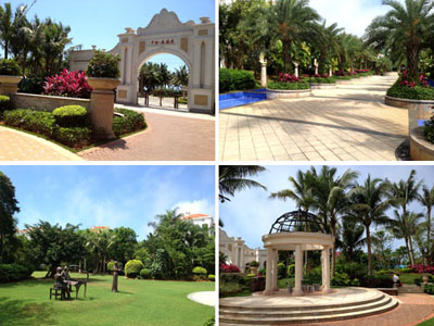 走進(jìn)森海灣,紅瓦白墻、單邊回廊的建筑設(shè)計(jì),與郁郁蔥蔥的植物一起,構(gòu)建了一個(gè)海灣童話城堡世界,營(yíng)造出閑適、愜意、溫馨、雅致的居住氛圍。據(jù)項(xiàng)目負(fù)責(zé)人葉偉華介紹,作為一個(gè)高端住宅區(qū),森海灣對(duì)園林景觀的要求比較高,小區(qū)以中軸景觀帶為主景,設(shè)有游泳池、休閑草坪、疊水等,種植大王椰、霸王棕、鳳凰木、重陽(yáng)木、中東海棗、老人葵等大樹襯托整個(gè)中央主景。各處庭院則選擇豐富多彩的樹種,采用不同的手法布局與建筑完美融合,透露出精細(xì)的西班牙情調(diào),用簡(jiǎn)單詮釋浪漫,點(diǎn)綴悠閑的度假生活,使整個(gè)園林充盈著濃郁的熱帶風(fēng)情。