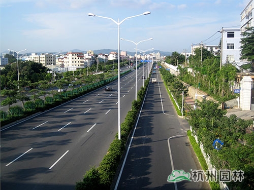 國道205深圳段改建工程景觀綠化工程G5402標(biāo)段,是深圳市龍崗區(qū)迎大運(yùn)重點(diǎn)景觀工程,位于國道205深圳段龍崗區(qū)地鐵三號線愛聯(lián)地鐵站至坪地與惠州市交界處,總綠化面積21萬㎡?!耙匀藶楸荆鹬刈匀弧?、“ 處處有綠葉、無處不飛花”等設(shè)計(jì)理念貫穿于工程始終,整條中央綠化帶位于高架橋下,生長茂盛的各類植物形成一條色彩繽紛的彩帶擁簇著高架橋段,使整體橋段與綠化景觀有機(jī)融合。整條道路的景觀,不僅體顯出一個(gè)濱海大都市獨(dú)有的景觀特色,更彰顯這個(gè)城市的生機(jī)活力與熱情奔放。