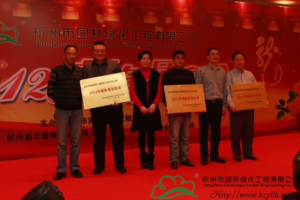 團(tuán)拜會的一個重要環(huán)節(jié)是表彰2011年度的先進(jìn)集體和先進(jìn)個人。人力資源部副經(jīng)理李穎新宣讀表彰文件之后,進(jìn)行了隆重的頒獎儀式,共頒發(fā)了優(yōu)秀分公司、優(yōu)秀市場拓展經(jīng)理、優(yōu)秀項目經(jīng)理、優(yōu)秀員工、新苗獎五個獎項,浙江省林業(yè)廳、杭州市林水局有關(guān)領(lǐng)導(dǎo),董事長吳光洪等為獲獎?wù)哳C發(fā)了證書和獎牌。