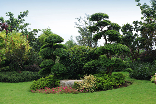在項(xiàng)目主入口、次入口、中心景觀及一些重要景觀節(jié)點(diǎn),黑松、女貞、水蠟、五針?biāo)?、紅花檵木、紫薇等造型樹木,宛如萬綠叢中的一點(diǎn)“紅”,彰顯出獨(dú)特的氣韻與品味,起到畫龍點(diǎn)晴的效果。