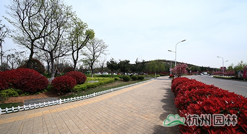 為恢復植被,修復裸露的山體,工程中應用了大量的植物,其中,榔榆、喜樹、樸樹、三角楓、黑松、香樟、銀杏、無患子、女貞、欒樹、七葉樹、五角楓、楓香、雪松、烏桕、廣玉蘭、黃連木、黃金槐、馬褂木等喬木50余品種,2.3萬余株,鄉(xiāng)土樹種占88%;垂絲海棠、映山紅、櫻花、紫薇、金絲繡球、含笑、紫葉李、茶梅、紅梅、紅櫨等花灌木100余品種,2.5萬余株;紅葉石楠、金森女貞、扶芳藤、南天竹、灑金珊瑚、水果蘭、六道木、檉柳、衛(wèi)矛、無刺枸骨、毛鵑、連翹、金鐘、迎春、紅花檵木等綠籬40余品種,面積約4.1萬平方米;各種宿根、球根、時令花卉和水生植物,如薰衣草、金雞菊、郁金香、鳶尾、牡丹、金絲桃、珍珠梅、繡線菊、美人蕉、荷蘭菊、蒲公英、亞菊、玉龍草、八仙花、瓊花、月季、薔薇等80余品種,面積約2.8萬平方米;鋪設草坪及地被麥冬等面積約8.7萬平方米。豐富的植物應用,使得原本裸露的山坡披上了綠色的盛裝,公園內(nèi),春有百花爭艷,夏有綠蔭匝地,秋有金色滿園,即使到了冬天,也仍能看到滿山的綠色與生機。