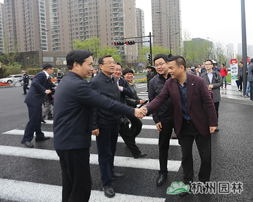 4月7日上午,浙江省委常委、杭州市委書(shū)記趙一德,杭州市委副書(shū)記、市長(zhǎng)張鴻銘等市四套班子帶領(lǐng)各區(qū)縣及相關(guān)部門(mén)負(fù)責(zé)人,冒雨檢查新塘路綜合整治工程情況。杭州市園林綠化股份有限公司總裁張炎良陪同前往。