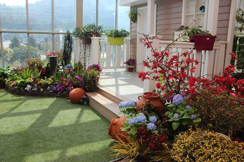 一般陽臺、露臺等部位以散射光為主,陽光直射時間相對較少,且溫度與外界相差不大,故植物在選擇時應具有一定的耐陰性與抗寒性。