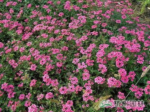 美女櫻,其姿態(tài)優(yōu)美,花色豐富,色彩艷麗,盛開時如花海一樣,令人流連忘返。美人櫻株叢矮密,花繁色艷,開花部分呈傘房狀,花色有白、紅、藍(lán)、雪青、粉紅等,花期為5-11月。喜陽光、不耐陰,較耐寒、耐蔭差、不耐旱?;ㄆ诳蓢娏姿岫溻洠龠M(jìn)花開放。