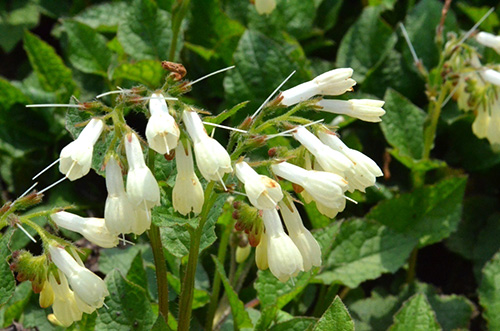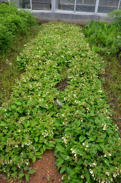 我是紫草科聚合草屬植物,叢生型多年生草本,作為高產(chǎn)飼料作物被世界各地廣為熟知,全株被向下稍弧曲的硬毛和短伏毛,聚傘花序,花序含多數(shù)花,花冠黃白色,花期3-5月,株高20-30cm。低矮緊湊可作為林下地被使用。還為低矮植物找不到發(fā)愁嗎?找我,找我,找我!