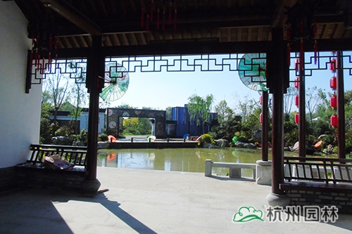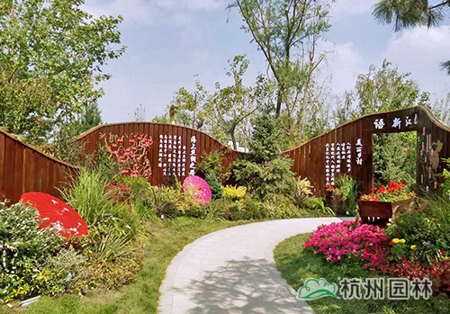 浙江省的室外展園——“浙江園”位于主會場的花博園花博島東側(cè),占地面積2500平方米,建設(shè)單位為浙江省林業(yè)種苗管理總站,設(shè)計與施工單位為杭州市園林綠化股份有限公司。