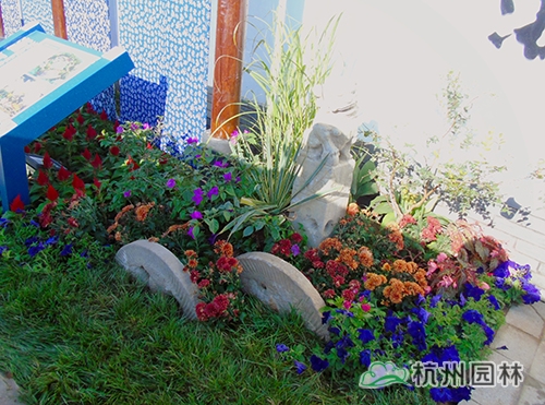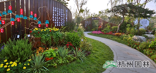 考慮到銀川的干燥氣候,垂直綠化墻植物的保濕成為難題?!罢憬瓐@”垂直綠化墻以無紡布為墻體材料,使用保濕性強(qiáng)的基質(zhì),優(yōu)選植物種類,同時搭配滴灌系統(tǒng),保證了綠化墻鮮花擁簇的景象。展園內(nèi)的垂直綠化墻設(shè)計簡潔、曲線優(yōu)美,與以錢塘江文化為主題的背景墻相互映襯,共同展現(xiàn)了新時期浙江園林景觀的不斷發(fā)展與創(chuàng)新。