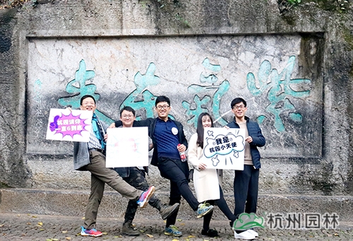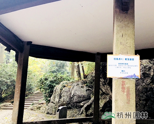 第二個(gè)任務(wù)點(diǎn)在紫氣東來石碑。大家在紫氣東來石碑前的平臺(tái)區(qū)域用“杭州園林”的元素進(jìn)行合影、點(diǎn)贊,即可蓋章過關(guān)。紫氣東來石碑是玉皇山的標(biāo)志性位置,大家在這里合影留念,成為“杭園小天使”,“為杭園打call”,玩的不亦樂乎。