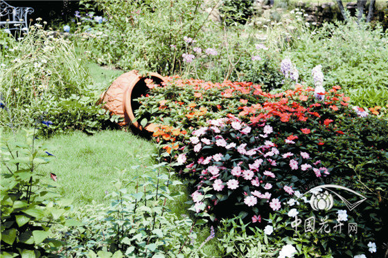 陶罐花溪景觀 以冰生溲疏為背景,通過陶罐的配置,組合搭配超級鳳仙‘桑蓓斯’、天竺葵、紫嬌花、粉花繡線菊、紅花鼠尾草、姬小菊、九頭獅子草、大花飛燕草等,形成以紅色調(diào)為主的陶罐花溪景觀。遠遠望去,仿佛一道絢麗的花海從陶罐中傾瀉而出,汩汩地流向遠方。