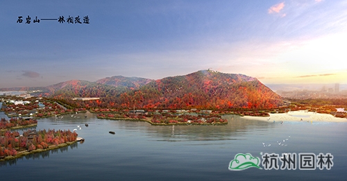 越王城山、老虎洞山、石巖山和柴嶺山為湘湖兩岸群山的四大主峰,依托層巒疊嶂之山勢,進行山林林相改造,營造錦繡湘湖之湖山景觀。