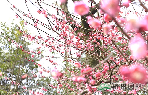 兩棵梅樹遙遙相望,爭芳吐艷。