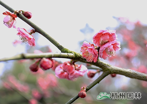 梅花Armeniacamume Sieb,薔薇科梅屬,落葉喬木,高達10m?;?/span>l~2朵單生,具短梗,芳香,在冬季或早春葉前開放。梅樹蒼勁古雅,疏枝橫斜,梅花傲霜斗雪、凌寒獨開、清雅俊逸。栽培歷史長達2500年以上。古樸的樹姿,素雅的花色,秀麗的花態(tài),恬淡的清香,和豐盛的果實,自古以來就為廣大人民所喜愛,為歷代著名文人所謳歌。賞梅之風自古至今連綿不絕,賞梅以聞香、觀姿、品風骨為主。