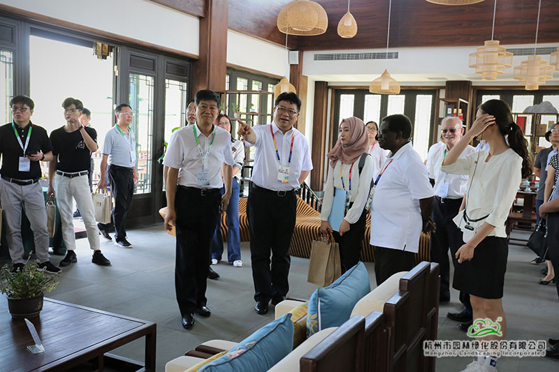 移步大露臺,嘉賓們憑欄眺望,小橋流水,花木蔥郁,“花園浙江”景致如詩如畫。胡俠局長詳細介紹了“浙江園”的設計主題、結構布局和意境表達,嘉賓們頻頻點頭贊許,對浙江園的建設給予了高度評價,認為浙江園較好地展現了美麗浙江景象和生態(tài)文明建設成果。