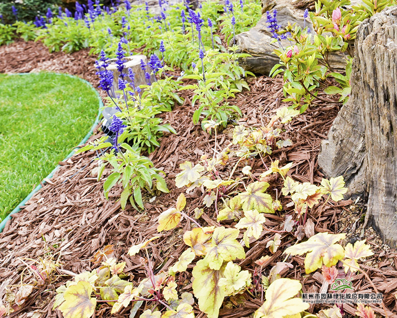 除了土壤改良,裸露地面還鋪了一層棕色覆蓋物,這是一種用樹皮深加工成的新型產(chǎn)品,里面加入了有利于植物生長的營養(yǎng)成分。不但具有美觀的作用,而且可以有效防止水分蒸發(fā)和水土流失,冬天則具有保溫作用,防止植物根系凍傷。