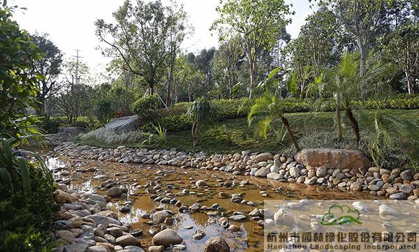 “項(xiàng)目將海綿城市理念融入公園建設(shè),園路鋪裝采用透水混凝土,下雨時(shí)雨水可快速滲透,路面不積水;旱溪景觀則在下雨時(shí)蓄水,雨水可用于植物的日常澆灌,干旱時(shí),鋪滿鵝卵石的水底又與周邊豐富的植物營造出另一種園林意境。”隨著葉偉華的介紹,項(xiàng)目建設(shè)中許多隱藏的細(xì)節(jié)不斷展現(xiàn),生態(tài)造園的理念進(jìn)一步深入人心。