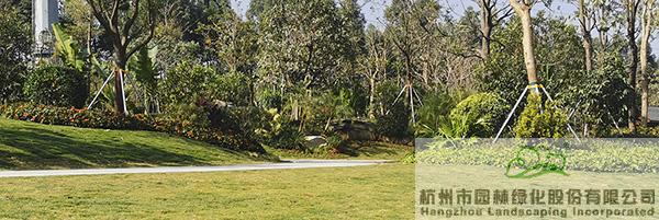 地被植物和小灌木充實(shí)園林的下層空間,往往起到“鑲邊”的效果,如果種植不好,很容易使底部出現(xiàn)裸露的土壤,景觀效果大打折扣。而該項(xiàng)目在現(xiàn)場放樣之后,先對(duì)地形進(jìn)行處理,形成一定的坡度,然后在地被植物或小灌木種植時(shí),上面坡度高的地方平種,隨著逐漸向下方邊緣靠近,植物種植向下方傾斜,逐步過渡,從上到下形成弧線,將土壤遮蓋?!斑@種處理手法,不但使下層空間看著自然美觀,而且避免了地面出現(xiàn)裸露情況?!比~偉華的言語中,不經(jīng)意間流露的,是杭園人對(duì)細(xì)節(jié)的極致追求。