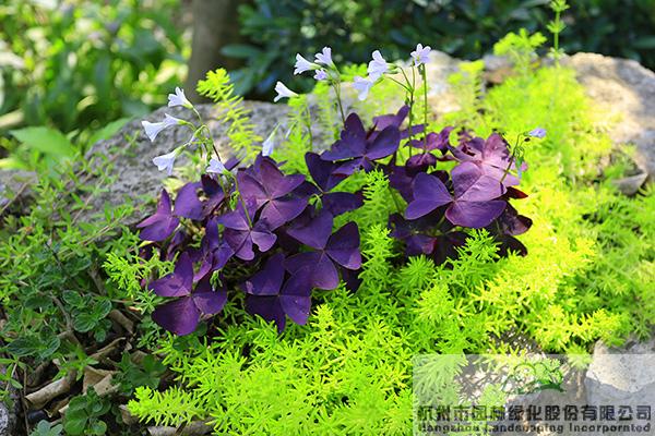 葉片紫紅色、花朵淡粉色的紫葉酢漿草,是萬(wàn)綠叢中一抹亮麗的紫。