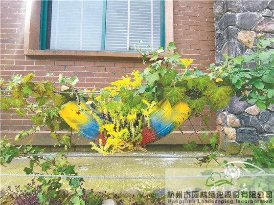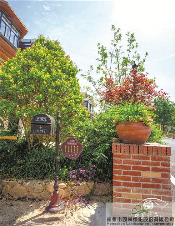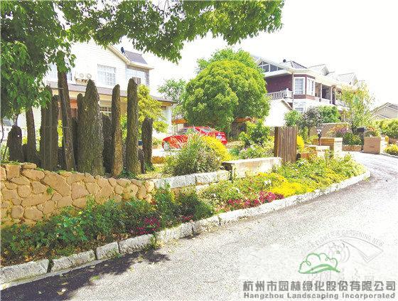 景墻邊的植物配置同樣有講究。利用銀杏、桂花、梅花、紅楓等植物營造上層空間,這些植物具有遮擋作用,能夠為庭院營造一定的私密空間。通過樹狀、球狀、攀援、傘狀、字母等各種形態(tài)的月季,金冠女貞球、龜甲冬青球、銀姬小蠟球、藍莓、八仙花、小葉梔子、翠蘆莉、花葉千鳥花、藍山鼠尾草、紫葉狼尾草等小喬灌木,在打造中層空間的同時,和美女櫻、金娃娃萱草、花葉玉蟬花、花葉香桃木、紫菀、澤蘭、礬根、五彩絡(luò)石、石竹等下層空間植物一起裝飾和襯托景墻,使家家戶戶的景觀更加豐富多變。