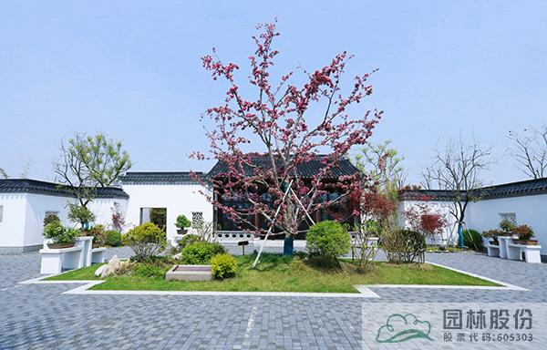 盆景園內,一棵棵造型別致的盆景,是海棠另一種形態(tài)的展現。院子中央,高大的‘豐盛海棠’正迎來盛花期,深粉色的花朵密密匝匝布滿枝頭,成為院中最引人矚目的風景,與院子里的五棵柿子樹搭配種植,組合成“五世同堂”的美好寓意,寓示著日子紅紅火火、闔家歡樂吉祥。在主建筑旁的天井處,采用盆景化的造園手法,運用南天竹、黑松、石子等元素營造的植物小景,自成一方小天地,與整個盆景園形成“園中園”的關系,展現出造園者的奇妙心思。