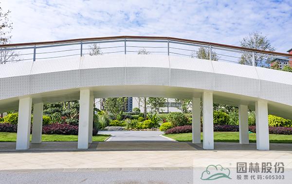 一座人行天橋,將公園景觀一分為二,動(dòng)靜結(jié)合,相得益彰。既劃分空間,又是公園景觀的一部分。