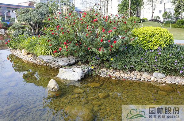 融入海綿城市理念打造的旱溪景觀,用鵝卵石鋪裝,點(diǎn)綴景石,岸邊種植造型水蠟、楊梅、蘆葦、蒲草、三角梅、黃金葉、黃金榕、朱蕉、扶桑花、變?nèi)~木、紅千層等當(dāng)?shù)剜l(xiāng)土植物,打造生態(tài)環(huán)保的地域特色景觀風(fēng)貌。