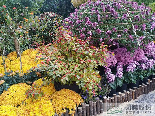 本次花境景觀中的主體雖是菊花,如球菊、蟹爪菊、乒乓菊、芙蓉菊等,但點綴其中的植物優(yōu)良品種,使得整體花境更具獨特魅力。