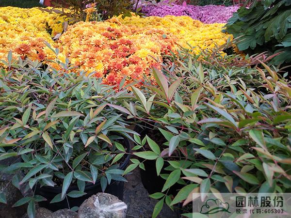 ‘灣流’南天竹為小檗科南天竹屬,常綠灌木;新葉銅紅色、橘黃色等,色彩豐富,老葉深綠色。美麗的觀葉觀果植物,株型直立,冠幅兩側(cè)對稱,是優(yōu)良的花境植物材料。