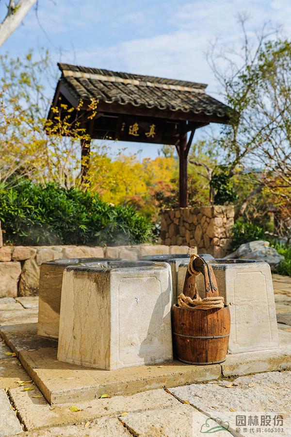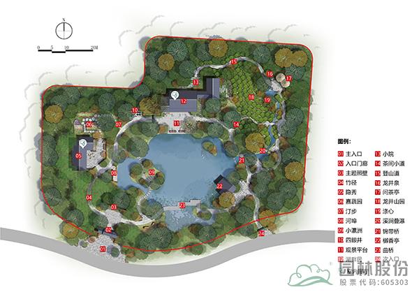 借助場(chǎng)地高差順勢(shì)而為,掇山理水,合理布局,形成了獨(dú)特的“一山、一溪、一湖、一島”的自然山水骨架和“二亭、二橋、二樓(民居)、三門”的建筑格局,通過景序布置、空間轉(zhuǎn)換劃分出五大展區(qū),既符自然之理,又富美感之趣。民居農(nóng)田、茶園竹林、鄉(xiāng)風(fēng)民情在這里融為一體,通過藏、透、回、借、寓等造園手法,從有限到無(wú)限,共同組成了天人合一的錢塘人家。