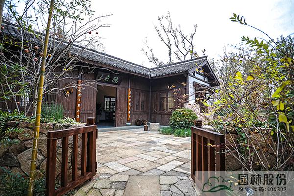 竹隱:主入口采用江南典型的錯(cuò)落雙面門樓造型,木結(jié)構(gòu)古雅清新,上書“家在錢塘”點(diǎn)明主題。正前方主題照壁形成障景,展現(xiàn)杭州園設(shè)計(jì)靈感與造園精神。