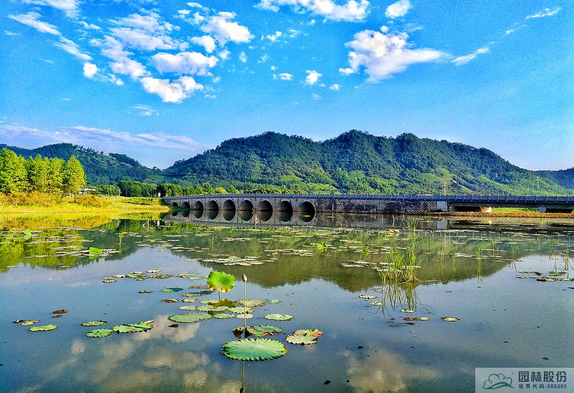 項目利用中心湖蜿蜒的湖灣和眾多洼地,引水入園,形成沿湖而生的各個景點。湖區(qū)背山面水,視線開闊,能遠望城市。沿線眾多湖灣處,設(shè)置各色景觀橋連通內(nèi)塘與外湖的生態(tài)通道,同時景觀建筑依水而建,與周邊景色相映成趣。