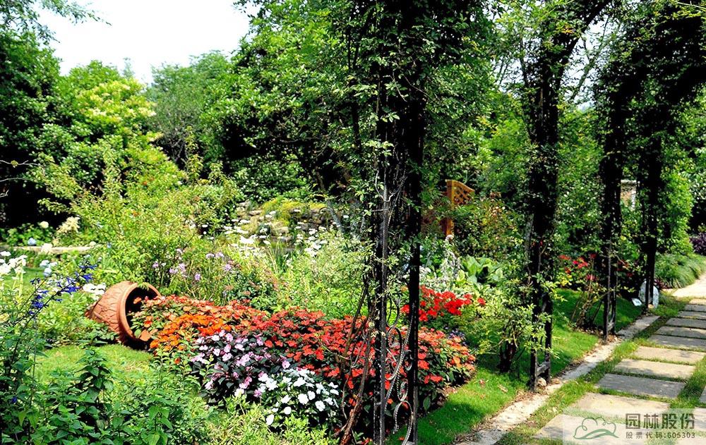 2017年,張楠主持設(shè)計(jì)與施工的“首屆中國花境競賽”參賽作品《花溪疊翠·芳滿庭》,位于臨安青山湖花園中心室外景觀展示區(qū),在現(xiàn)有庭院布局基礎(chǔ)上,外圍景觀結(jié)合木香藤架,打造林蔭、陶罐花溪、鼠尾草等景觀系列,營造百花齊放、芳菲無數(shù)滿庭院的意境;內(nèi)部則用櫸樹、景石、石籠擋墻及園路圍合成半開敞空間,以八仙花為主材、搭配鳶尾、石榴、落新婦、百子蓮等,打造3個(gè)花境組團(tuán),營造人們熱愛生活、向往美好的鄉(xiāng)村私密花園美景。歷經(jīng)數(shù)月的精心施工、養(yǎng)護(hù)與專家評(píng)比,該作品從43個(gè)參賽作品中脫穎而出,榮獲“首屆中國花境競賽金獎(jiǎng)”。