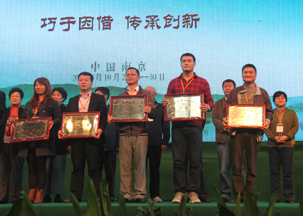30日下午閉幕式的一個重要環(huán)節(jié)是為2011年度中國風(fēng)景園林學(xué)會優(yōu)秀園林工程獎獲獎單位頒獎。由杭州市園林綠化工程有限公司承建的“昆明市市級黨政機關(guān)辦公用房搬遷建設(shè)項目區(qū)內(nèi)景觀綠化工程(第三標(biāo)段)”和“吳江市震澤鎮(zhèn)寶塔街西入口沿河、沿街北側(cè)、后花園仿古建筑工程”分別榮獲“中國風(fēng)景園林學(xué)會優(yōu)秀園林綠化工程獎金獎”和“中國風(fēng)景園林學(xué)會優(yōu)秀園林古建工程獎銀獎”。高總代表公司上臺領(lǐng)取了獎牌。