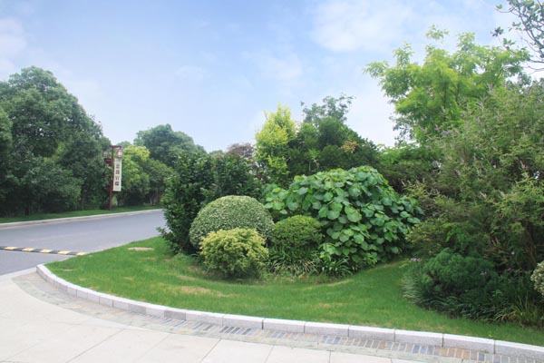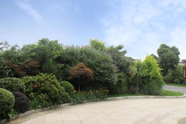 別墅小區(qū)公共景觀的植物配置不但要與建筑、環(huán)境相協(xié)調(diào),還要做到多層次、多樣化、多季相,并創(chuàng)造出植被生態(tài)景觀及其圍合空間的豐富多彩,達到人與環(huán)境的和諧統(tǒng)一,因此,植物的選擇與配置顯得尤為重要。據(jù)徐建良介紹,工程中的植物選擇與配置遵循三個原則:第一,根據(jù)地域特征,考慮季相變化;第二,根據(jù)建筑空間的大小、遠近,近景或端景配置觀賞性強的品種,遠景的植物配置則充分考慮空間天際線及建筑物之間的關(guān)系;第三,充分考慮林下植物和孤賞植物布置的各個方面,突出自然生長特征和人工修整造型植物之間的反差對比。以此為指導,上層空間選擇了香樟、合歡、玉蘭、樸樹、銀杏等大規(guī)格喬木,中下層空間種植紅葉石楠、枸骨、杜鵑、鋪地柏、火棘等花灌木和地被,再配以微地形的處理,整個植物造景的林冠線、林緣線及空間層次別具特色,從而使得別墅區(qū)的整體景觀層次分明、色彩豐富,既在統(tǒng)一中富于變化,每個區(qū)域又自成風格。特別是每個路口的花境營造,更為小區(qū)增添一抹亮色。